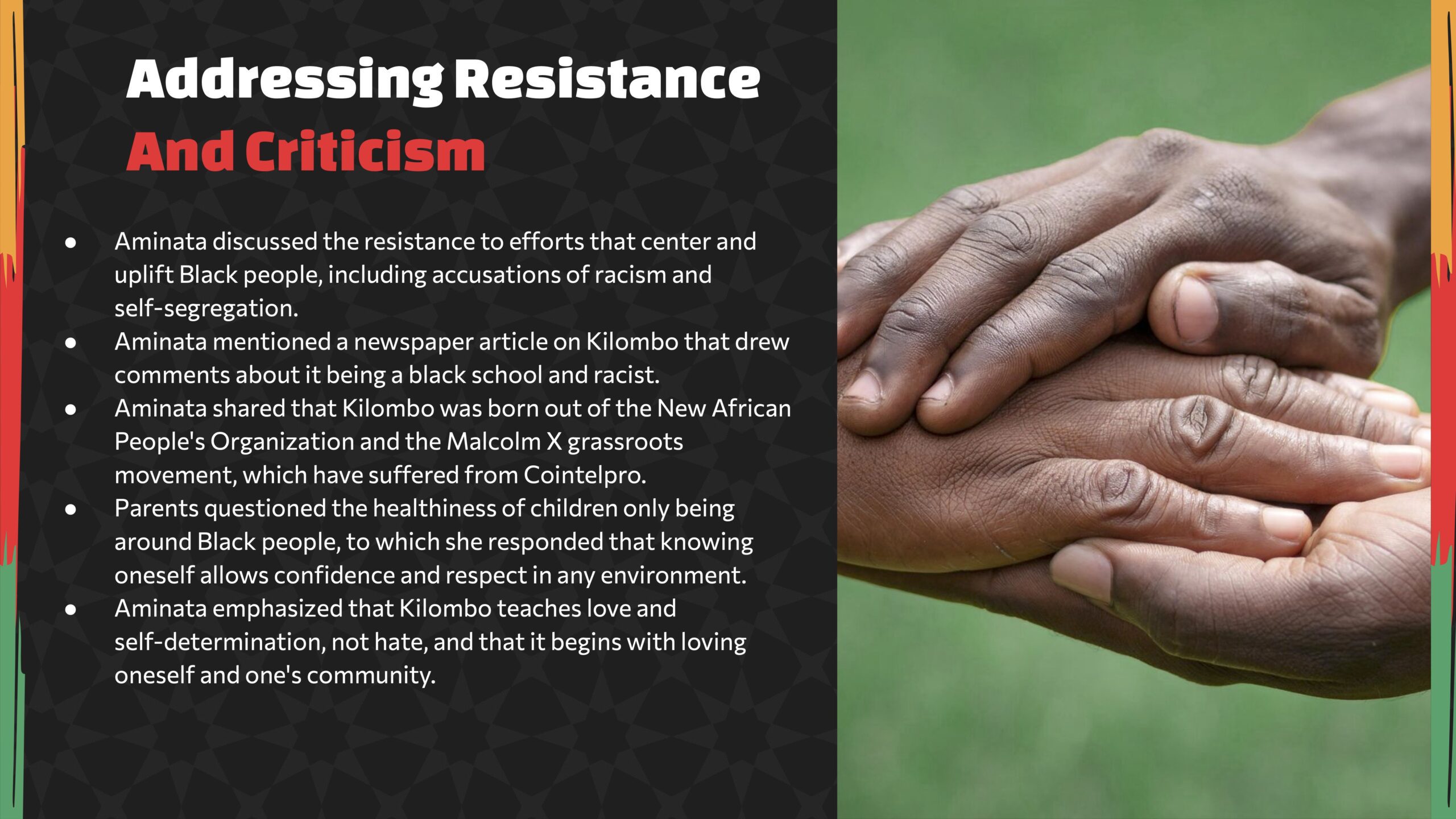After reading We Are an African People by Dr. Russell Rickford, I became deeply interested in the history and impact of independent Black schools (IBS),educational spaces rooted in the Freedom School tradition that emerged prominently during the Black Power era. As someone passionate about the intersection of racial justice and education, I chose to interview Aminata Umoja, an activist and founder of Kilombo Academic and Cultural Institute, an independent Black school in Decatur, that centers culturally responsive teaching and learning. This project felt especially timely given the growing backlash against critical race theory and efforts to suppress honest conversations about race in education nationwide.