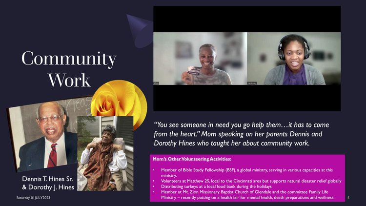 Judy Hines-Bailey has many labels: wife, twin, daughter, Delta soror and Domestic Diva but I know her more so as Mom. Picking from what may be your average everyday person, who is going above and beyond to help shape her community and continuously showcasing her leadership, that’s my mom. My mom explains her drive and motivation that were instilled in her at a young age through her parents. I hope you enjoy my oral presentation on my mom, a leader in the community making a lasting impact in society.