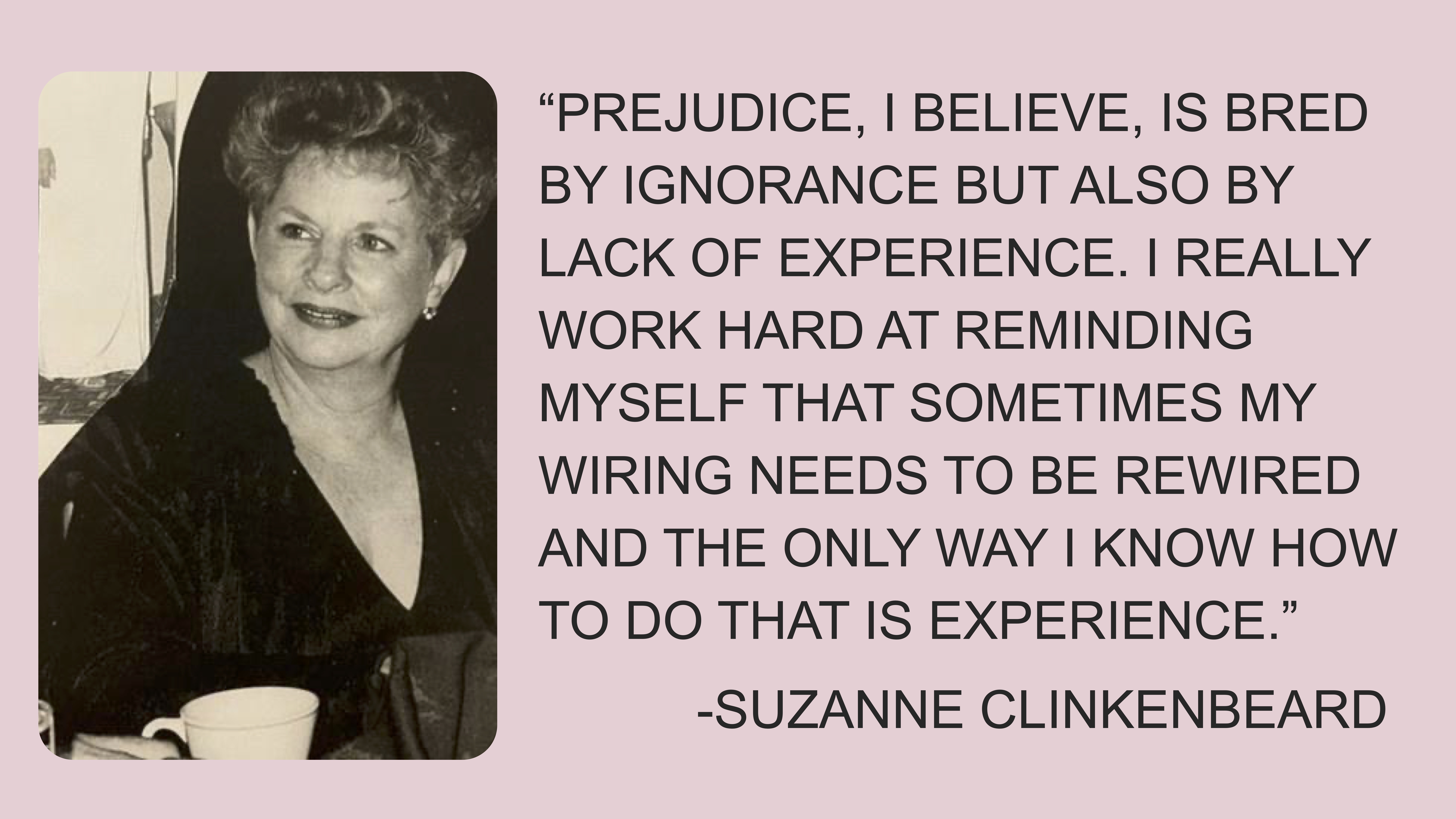 This oral history project explores the life and social change work of Suzanne Clinkenbeard, a dedicated educator and community advocate. Suzanne spent much of her teaching career working with inner-city and at-risk students, guided by a deep belief in every child’s potential. Her lifelong commitment to service extended beyond the classroom through her enduring relationship with multiple families she supported and later considered part of her own. Suzanne emphasizes the power of sustained, small acts of kindness and the moral responsibility to care for others, lessons that shaped not only her life but the values she passed on to her family.